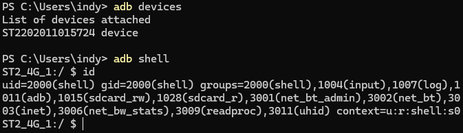 Oh young padawan, you should have learnt by now it's never that easy. My shell was unauthorised, modern android doesn't let any client have shell access, you've got to give it permission.
